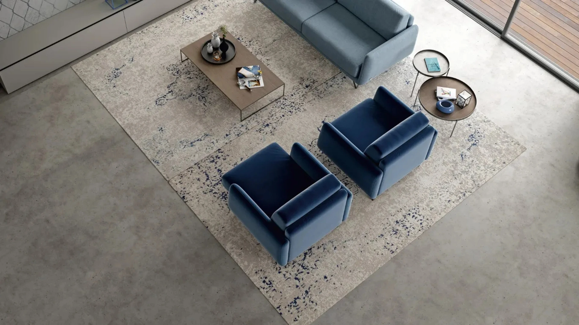 Complementi e tappeti personalizzano l'arredo di casa, riempiendo lo spazio in modo utile e rendendolo accogliente e bello a vedersi. Le composizioni di grande valore estetico del marchio Doimo Salotti rendono belli gli interni con colore e stile, ricreando particolari atmosfere arredative. Assai versatili e multifunzionali, i Complementi design in tessuto assolvono a funzioni diversificate: completano le doti pratiche e l'estetica dell'ambiente. Nel nostro punto vendita potrai vedere dal vivo la qualità dei modelli di tappeti design in tessuto della firma, proprio come questa soluzione in foto.