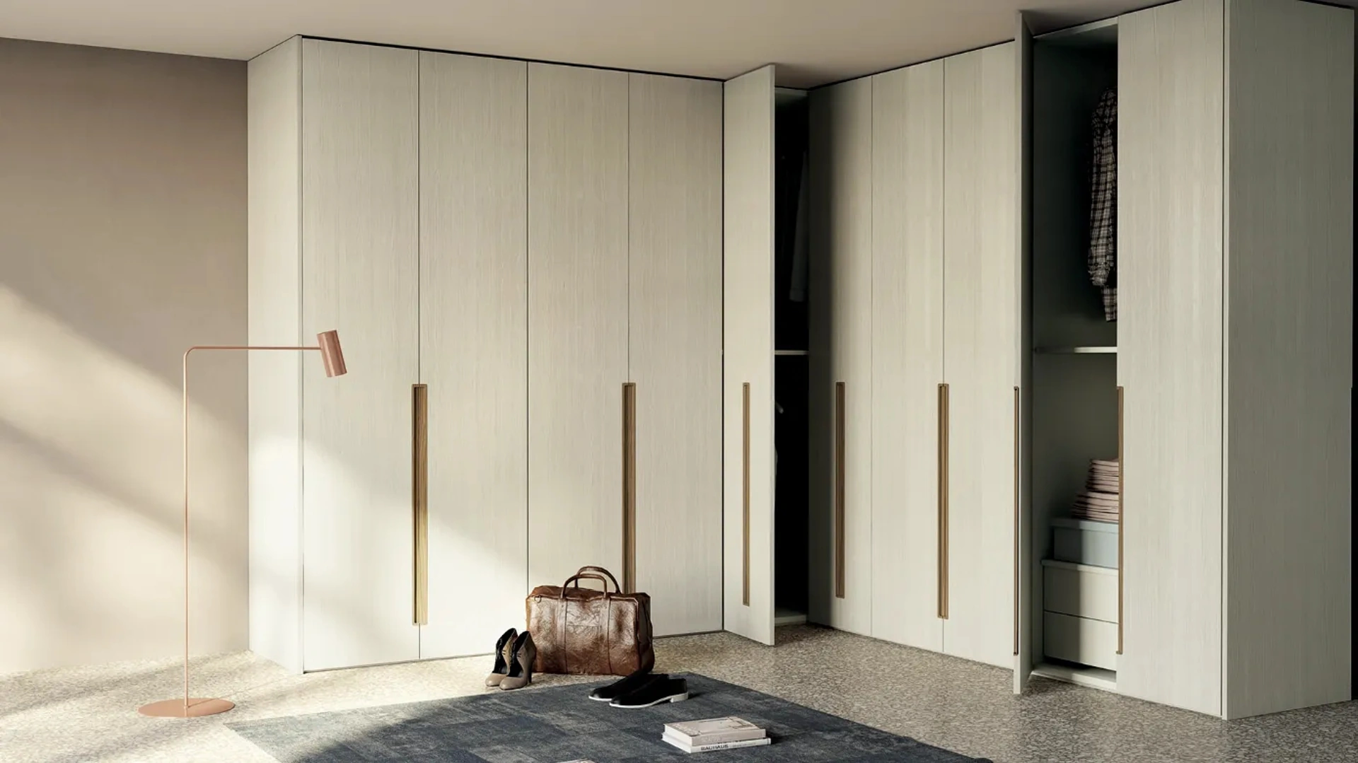 Gli Armadi ad angolo con ante battenti sono componenti imprescindibili in camera, per renderla ammobiliata al meglio, pratica e completa di tutto. Contattaci e ottieni informazioni sulla nostra serie di Arredamento Casa Brescia: avrai la possibilità di ultimare la zona del riposo potendo usufruire di una ricca gamma di contenitori moderni, come l'armadio in legno nell'immagine. Armadio Island angolare con ante battenti di Fratelli Mirandola: compila il form per ricevere info di ogni sorta e consigli per arredare la camera che hai sempre sognato.