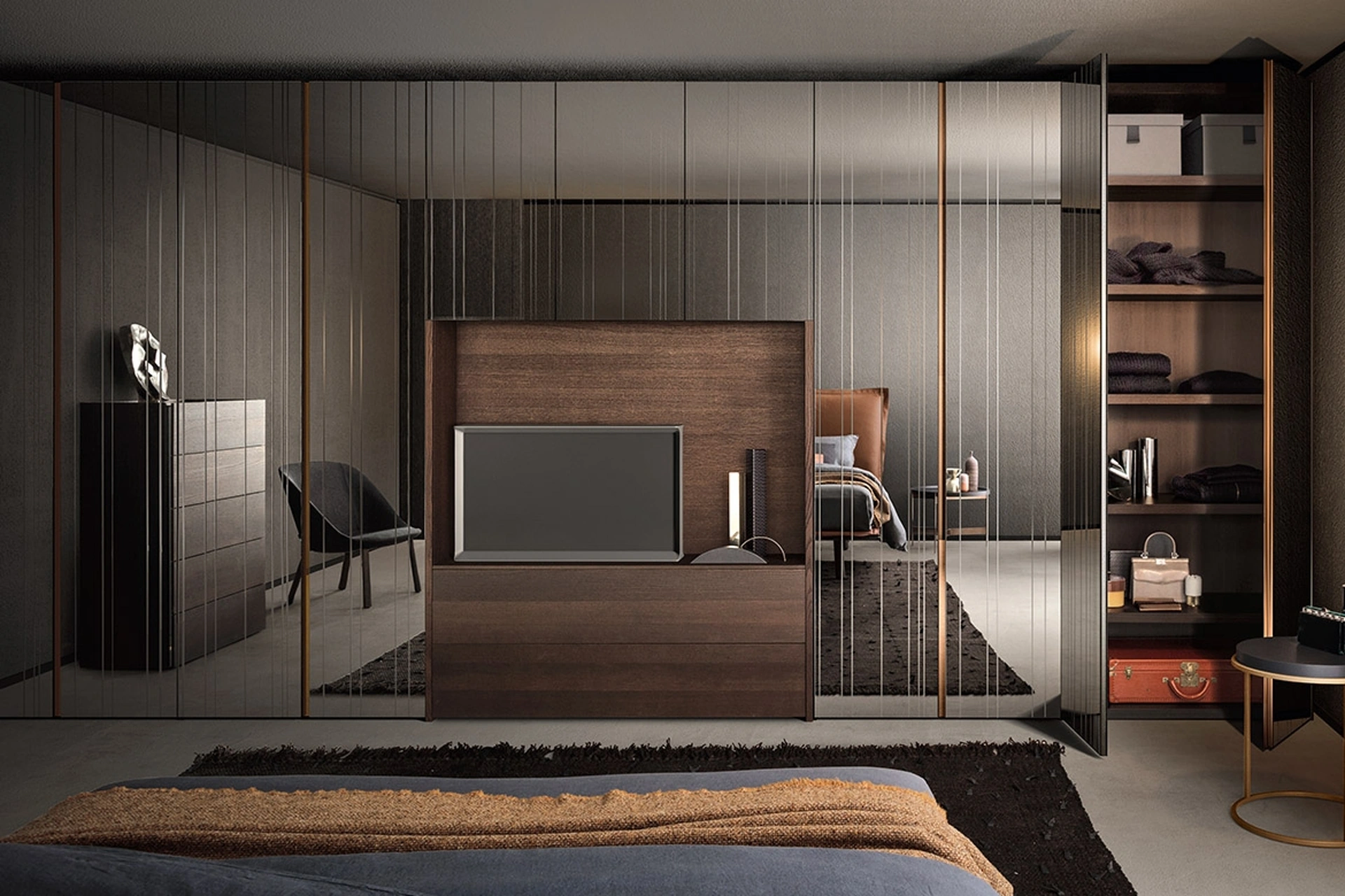 Nella nostra linea di Armadi a muro design con ante battenti troverai anche il modello visibile in foto, ideale per chi cerca praticità e design. Armadio con ante battenti a specchio Raggio di Pianca: compila il form per informazioni e preventivi e progetta la tua casa come l'avevi sognata. Contattaci e ottieni informazioni su un ricco catalogo di Arredamento Casa Brescia per arredare la zona notte potendo usufruire di contenitori in vetro di elevata qualità. Per completare il progetto d'arredo in una camera da letto bella e funzionale, abbiamo scelto per te le più esclusive e attuali soluzioni Pianca, diverse per eleganza, dimensione, materiale e accessori.