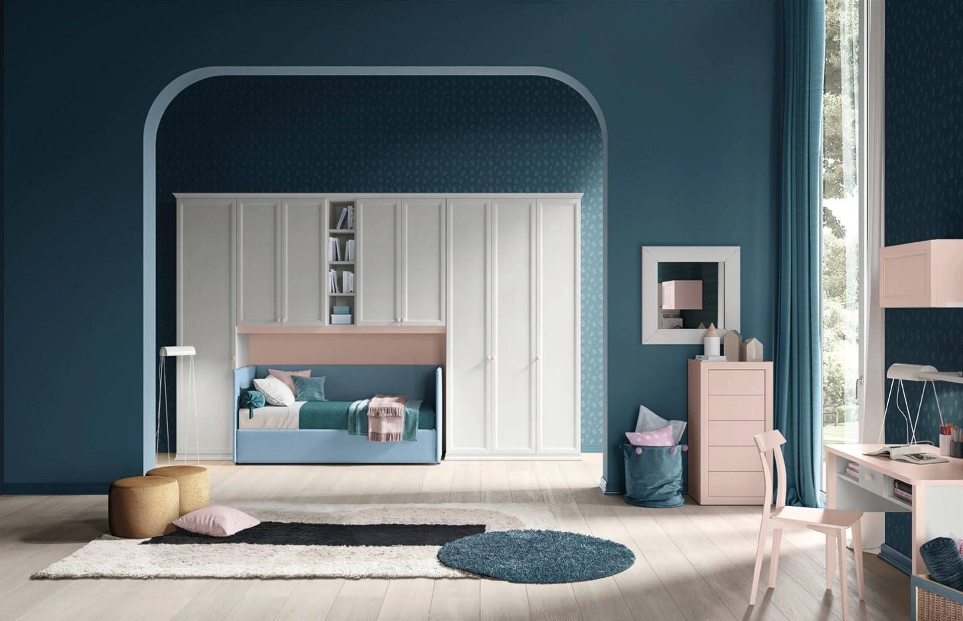 Colombini Casa asseconda il gusto dei giovani e le richieste dei genitori con le sue Camerette classiche a ponte, ideali per necessità di ogni genere. Con una composizione arredativa Colombini Casa, potrai ultimare con funzionalità e design lo spazio nel quale i tuoi figli passano gli anni fondamentali della vita. Tonalità di tendenza e progetti articolati eccellenti caratterizzano le più esclusive proposte del noto e rinomato marchio che presentiamo nel nostro showroom. La Cameretta a ponte Arcadia AC028 di Colombini Casa in melaminico è un ambiente articolato da organizzare con cura, unendo vari accessori su misura.