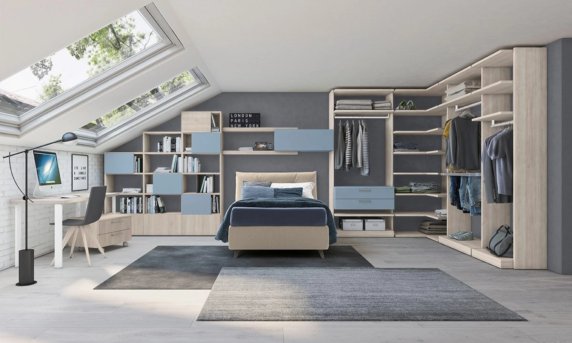 Venire in negozio vuol dire vedere dal vivo tutte le più belle soluzioni per ragazzi componibili in melaminico che proponiamo nel nostro showroom. Con la Cameretta Golf Y21 di Colombini Casa renderai la stanza dei tuoi figli uno spazio davvero vivibile e sicuro, che li accompagnerà nella crescita. Questa soluzione con finitura in melaminico, tra quelle componibili per ragazzi di Colombini Casa, accontenta le necessità degli adulti e i gusti dei piccoli. Il noto brand presenta svariate soluzioni design, così la cameretta risulterà un locale dove i bambini possono diventare grandi e riposare.