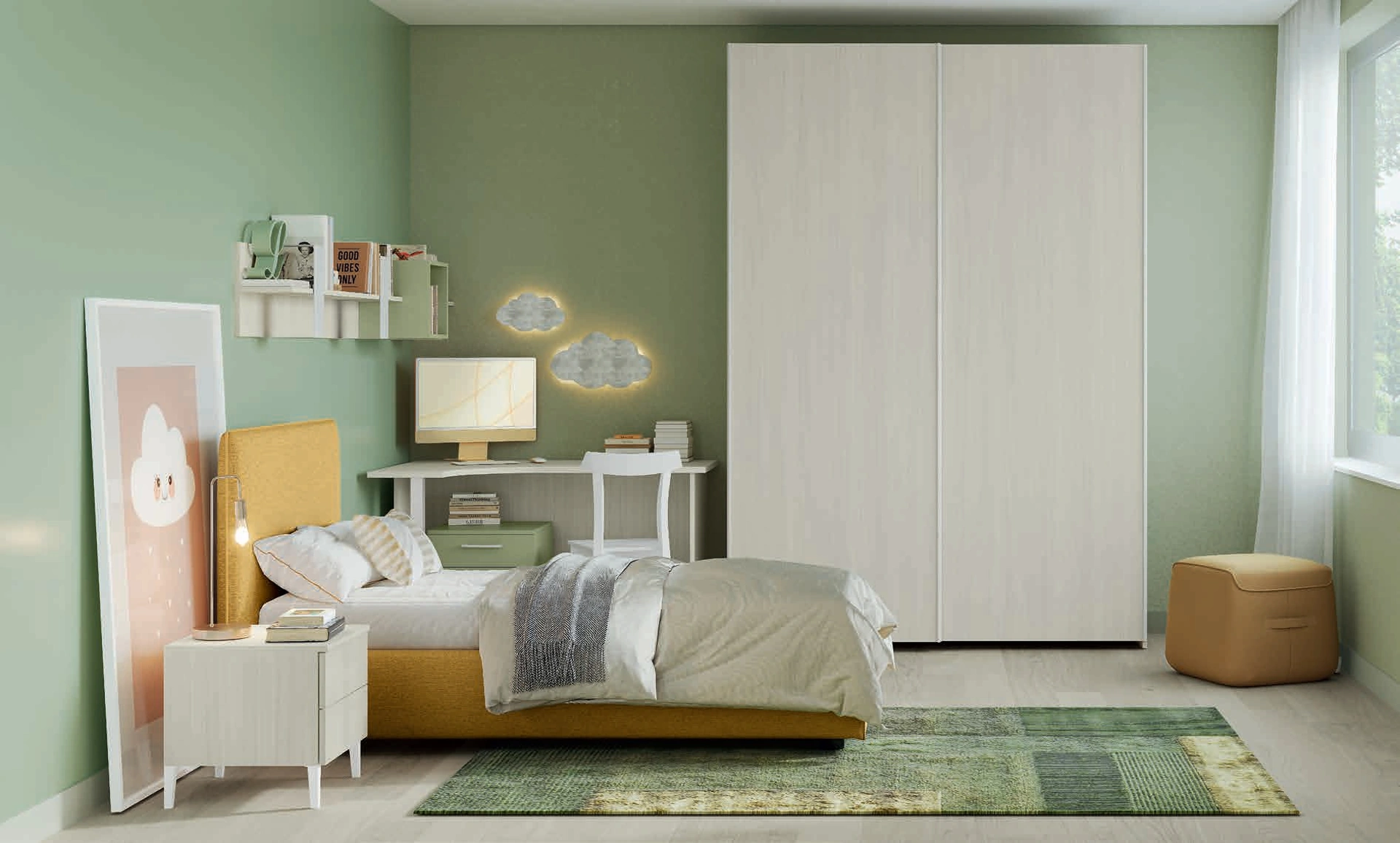 Se cerchi spunti creativi per progettare alla perfezione la stanza dei tuoi bambini, ti proponiamo la Cameretta Volo Kid C017 di Colombini Casa con finitura in melaminico. Questa soluzione in melaminico ultima alla perfezione le doti pratiche e l'estetica della camaretta, in quanto è capace di coniugare funzionalità ed ergonomia. Colombini Casa mette a disposizione un ricco catalogo di elementi accessori da accostare su misura: troverai letto, armadio, tavolo da lavoro, sedie e librerie. Porta valore estetico e colori vivaci nella stanza dedicata ai più piccoli con questa proposta, una delle Camerette componibili per ragazzi di Colombini Casa.