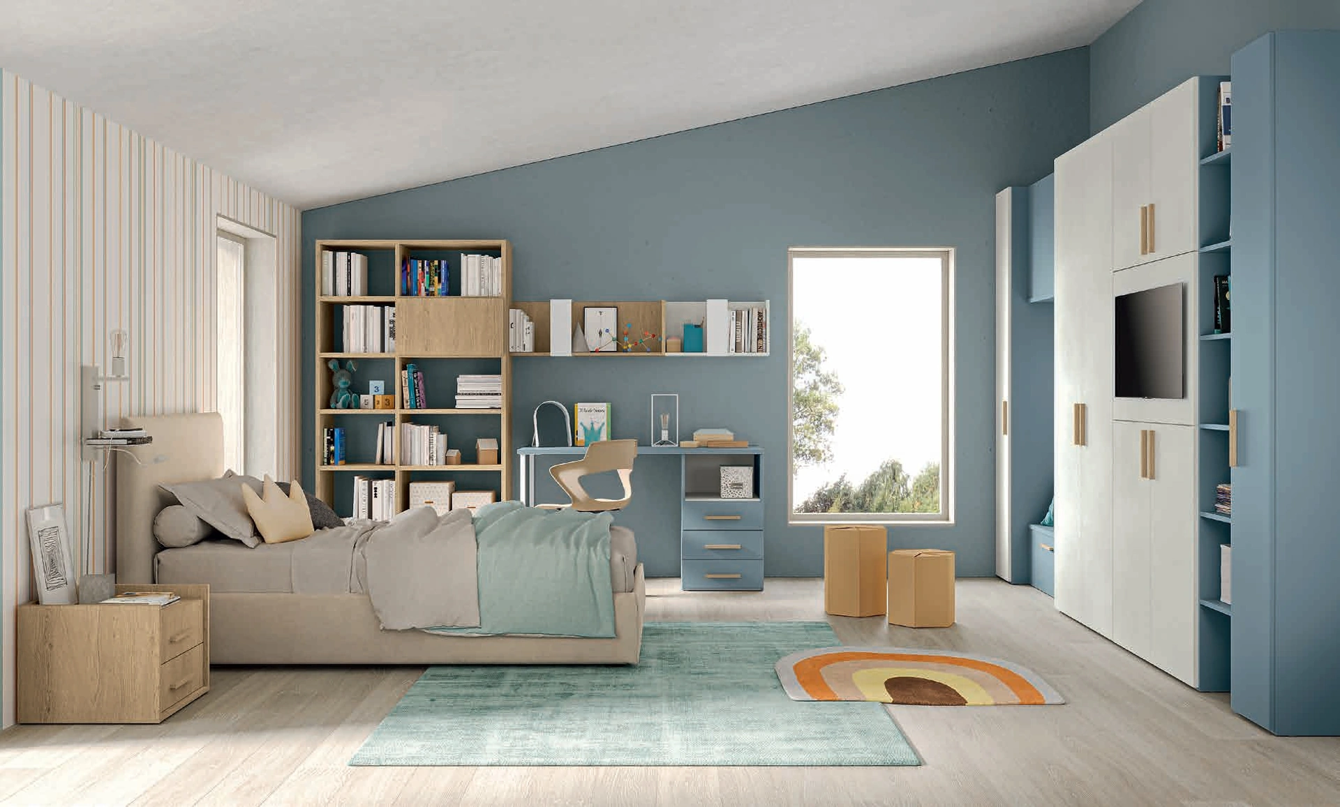 Questa soluzione con finitura in melaminico, tra quelle componibili per ragazzi di Colombini Casa, soddisfa le richieste degli adulti e i gusti dei giovani. Per organizzare perfettamente le Camerette, Colombini Casa offre progetti articolati e versatili: sono svariate le attività che i tuoi figli portano a termine lì. Venire in negozio vuole dire toccare con mano tutte le più belle soluzioni per ragazzi componibili in melaminico che presentiamo in negozio. Con la Cameretta Volo Kid C018 di Colombini Casa renderai la stanza dei tuoi figli un ambiente davvero vivibile e sicuro, che li seguirà mentre diventano grandi.