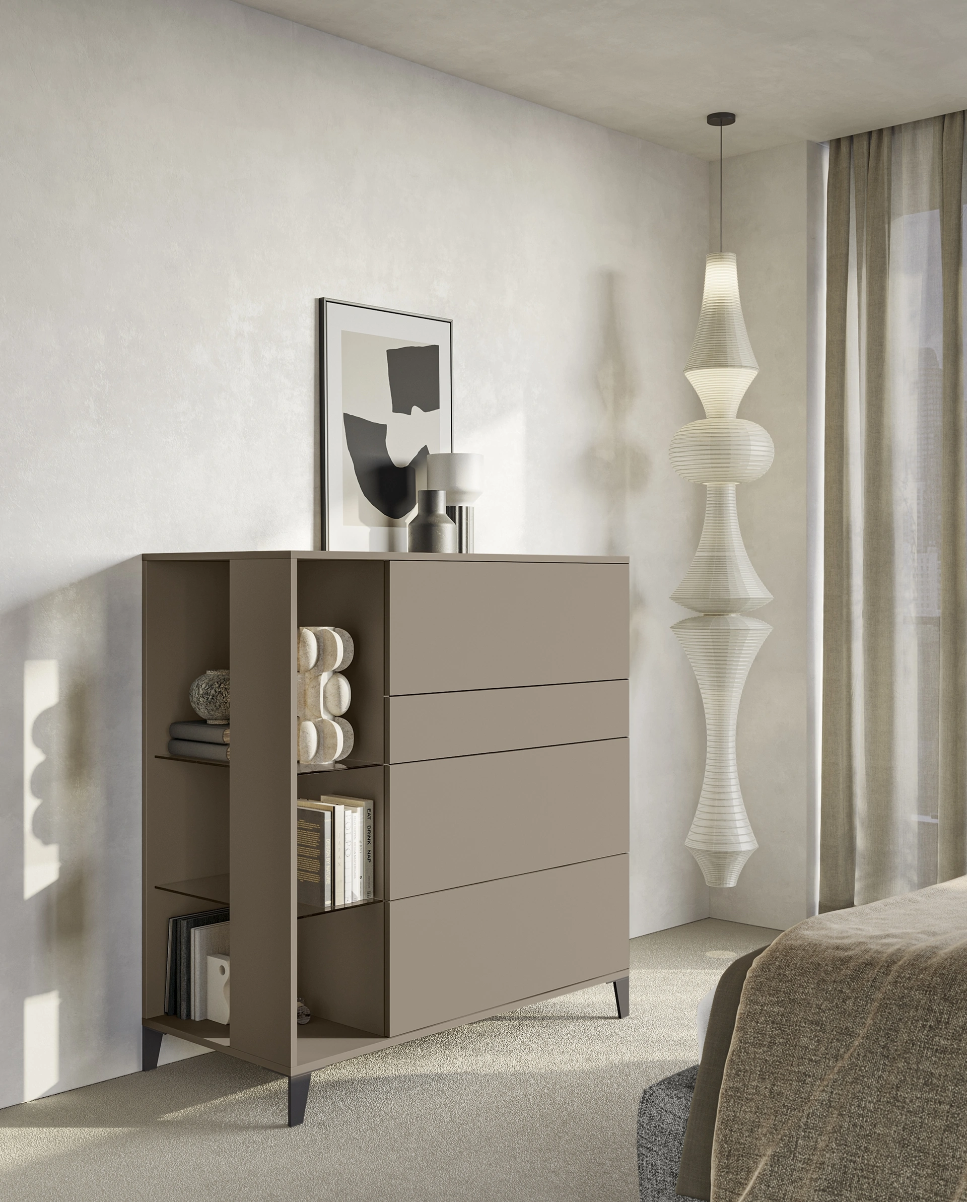 I Comodini sono alcuni dei mobili ed elementi accessori imprescindibili in ogni zona notte, in quanto permettono di ultimare gli spazi ottimizzando ogni angolo. Le proposte in melaminico della marca Colombini Casa, leader nella realizzazione di armadi e comò, permettono di ricreare accostamenti su misura oppure avere caratteristiche in equilibrato contrasto con il resto degli arredi. Grazie a questi accessori di arredamento possiamo ordinare oggetti di uso quotidiano o esporre elementi accessori. Comò Golf Hive di Colombini Casa: si tratta di un tipo di contenitore poliedrico e capace di assicurarti funzionalità e grande valore estetico in spazi moderni.