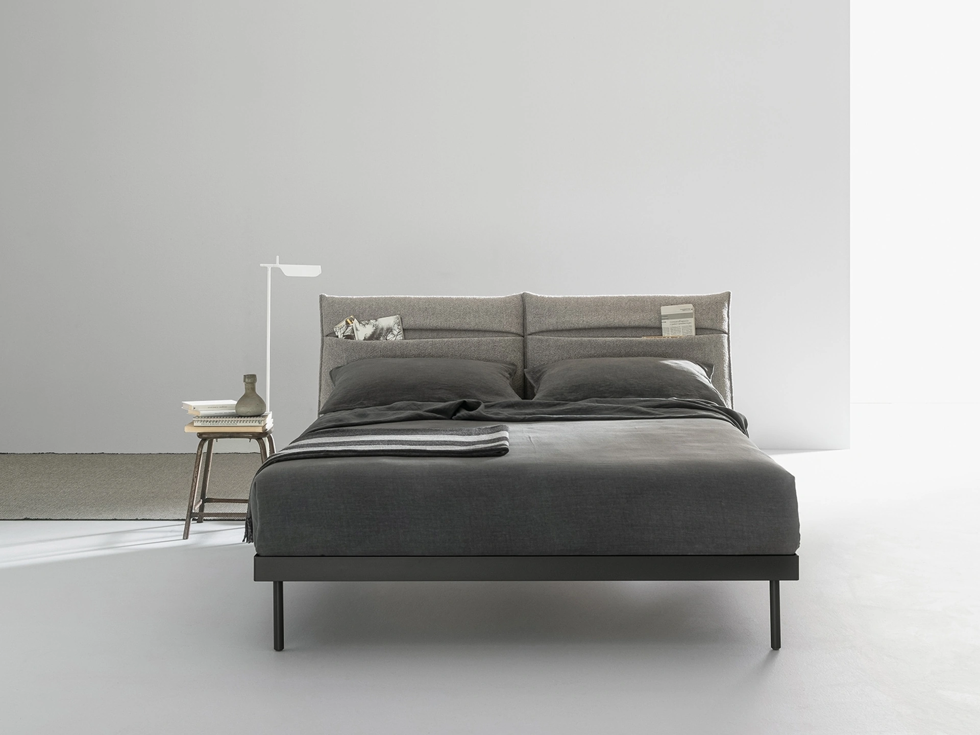 Durante l'acquisto della giusta tipologia di letto, valuta attentamente le sue dimensioni, le finiture, la forma e il suo stile rispetto al resto degli arredi. Scegli cromie e texture e realizza il tuo progetto d’arredo nella zona notte, progettandola proprio come l'avevi sognata. Se vuoi una soluzione in tessuto, il modello mostrato in foto è contraddistinto da materiali di qualità e linee decise, che invitano a goderti un sonno tranquillo e ristoratore. I Letti matrimoniali imbottiti del marchio, leader nella produzione di Arredamento Casa per la zona del riposo, sono pensati per essere abbinati a mobili e oggetti accessori di ogni tipo, come armadi e comò, lampade e piantane.