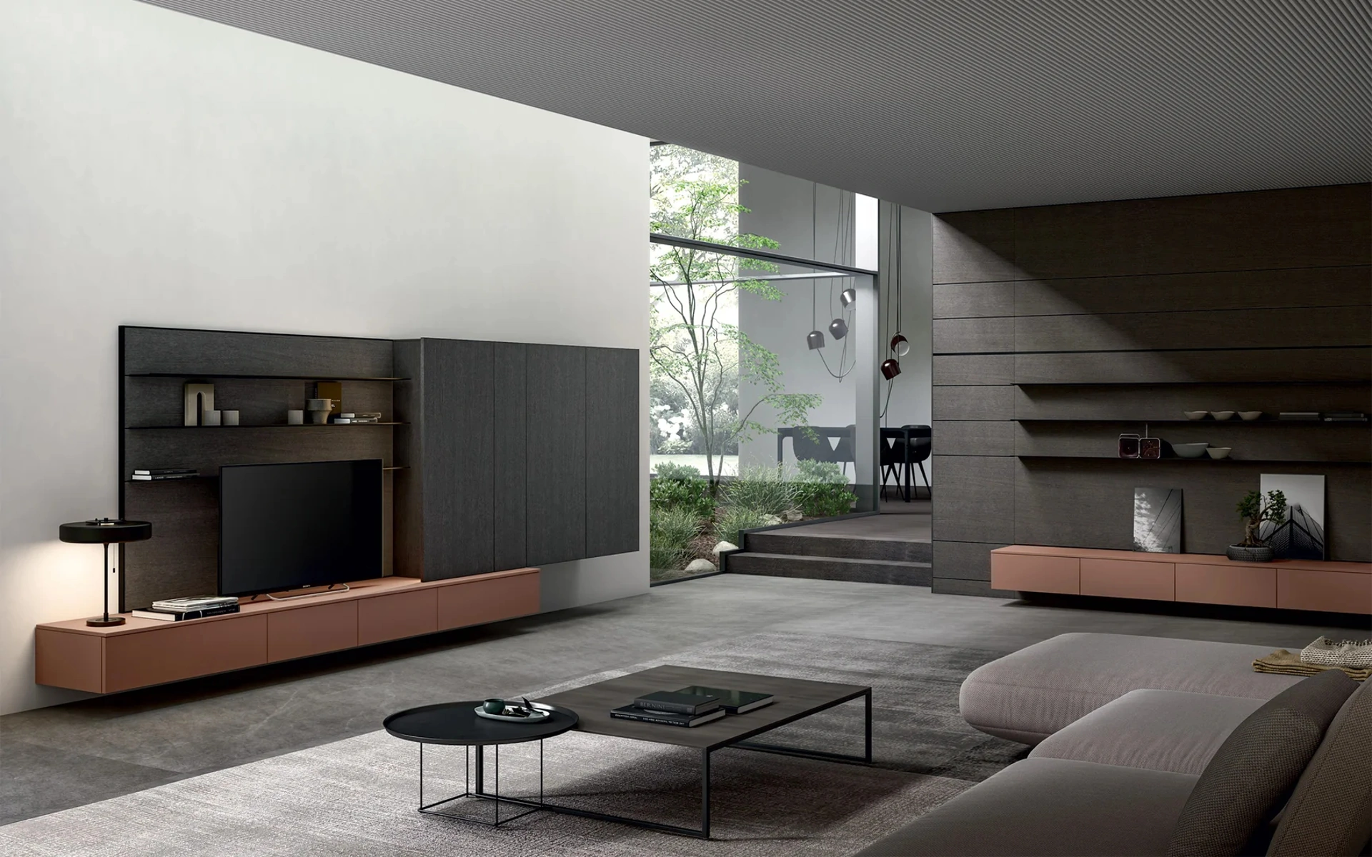 Attraverso un gioco dinamico di accostamenti fra componenti a giorno o vani chiusi, le Pareti Attrezzate moderne arredano il soggiorno usufruendo al meglio di ogni spazio. Questa parete attrezzata è una delle soluzioni della marca e ti permetterà di ammobiliare il soggiorno secondo le più particolari problematiche abitative. Le Pareti Attrezzate hanno assunto un posto di primo piano nella zona giorno delle nostre case: sono arredi multifunzionali e salvaspazio sempre realizzabili su misura per te.