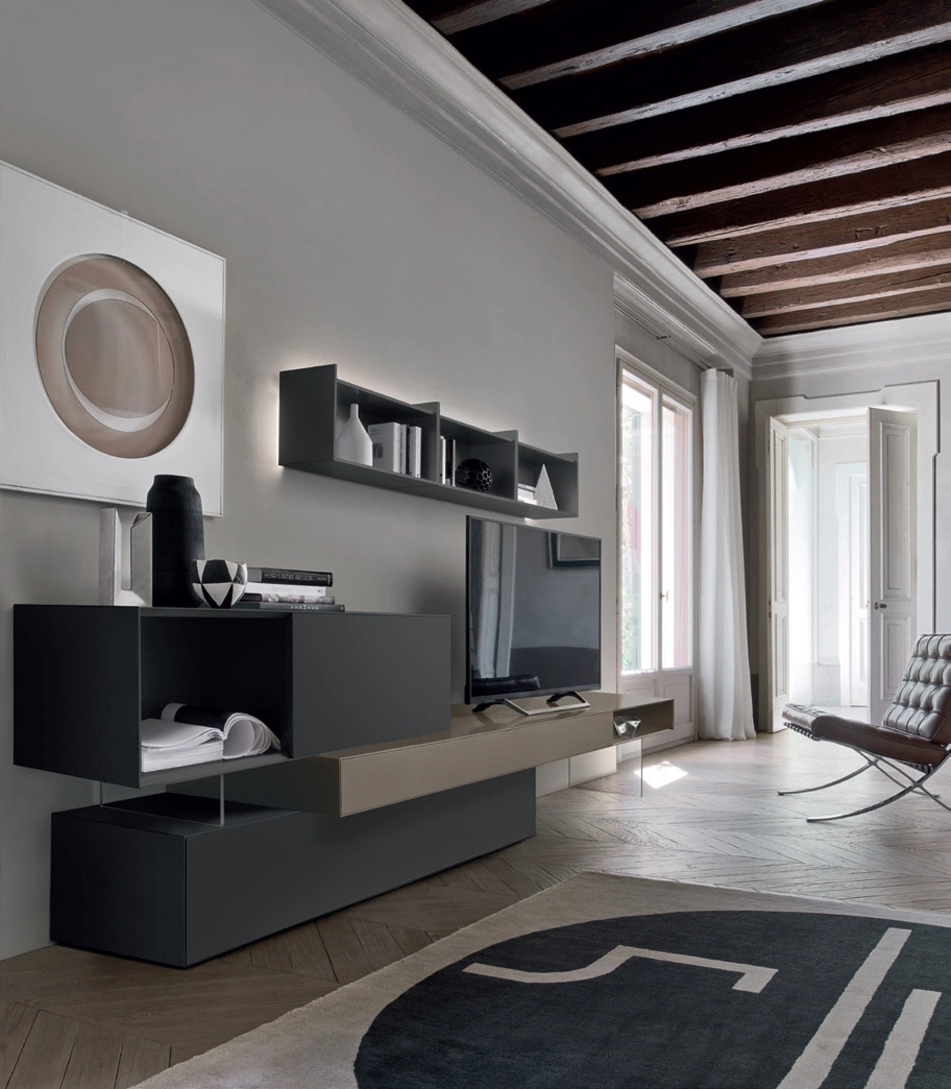 Siamo rivenditori di Arredamento Casa in laccato opaco dei migliori brand: contattaci e scopri di più! Studiando le più attuali e personali esigenze abitative, selezioniamo solo le più belle e interessanti soluzioni d’arredo in commercio, realizzabili su misura in base alle più personali richieste. Scopri la nostra linea di mobili per il soggiorno dell'azienda Sangiacomo e potrai arredare la tua abitazione con uno stile unico e le doti contenitive di cui necessiti. La Parete Attrezzata Base Domino IN3 21N di Sangiacomo diventa presenza caratterizzante in stanze di ogni tipo grazie ai suoi accessori modulari e alla possibilità di selezionare finiture, materiali, cromie, forme e molto altro.