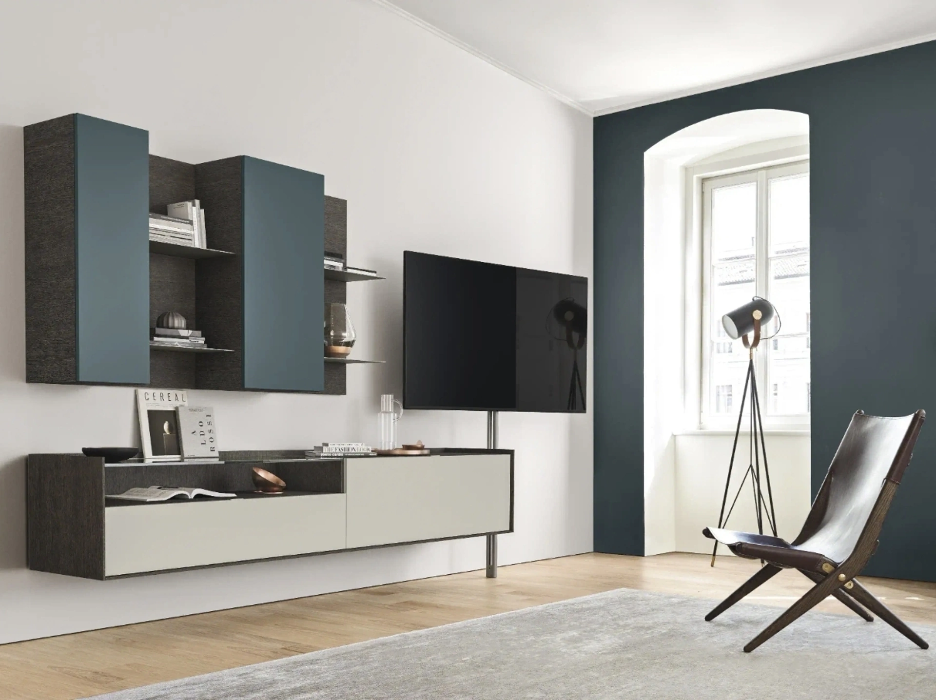 Un po’ librerie, un po’ mobili contenitori ed espositori: le Pareti Attrezzate sono ideali per attrezzare uno spazio operativo e pratico. Se cerchi arredi salvaspazio e realizzabili su misura per te, contattaci e ottieni informazioni sull'Arredamento Casa Brescia delle migliori marche. Anche in un soggiorno non generoso, questo tipo di arredo riesce a ottimizzare gli spazi sfruttando bene ogni angolo e garantendo l'alta componibilità tipica delle soluzioni moderne. La Parete Attrezzata sospesa Cabaret Glass 02 di Sangiacomo nell'immagine, con finitura in laccato opaco, risolve le più personali problematiche abitative di stile e spazio senza rinunciare alla ricerca stilistica.
