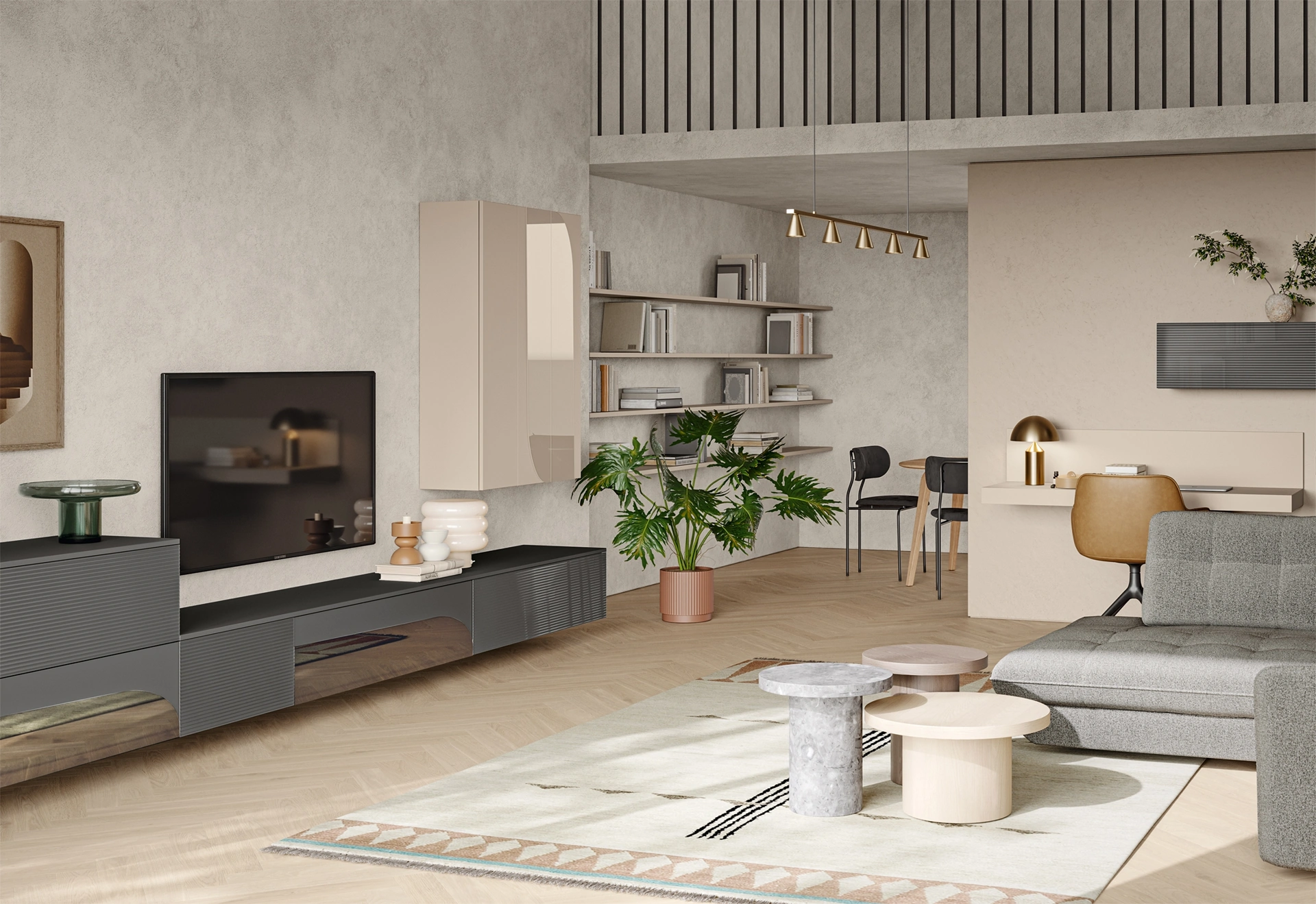 I mobili soggiorno in vetro dalle linee moderne come il modello nella fotografia sono davvero poliedrici e capaci di ammobiliare la zona giorno ottimizzando ogni angolo. La Parete Attrezzata Eclettica EG001 di Colombini Casa nella fotografia è una delle più esclusive soluzioni d’arredo in commercio: l'alta componibilità e le varie opportunità di progettazione la rendono bella e funzionale. Colombini Casa produce originali modelli di mobili soggiorno, diversi per stile e forme, finiture e accessori: scopri nel nostro showroom l'Arredamento Casa Brescia delle migliori marche. Lasciati ispirare da un ricco catalogo di mobili per la zona giorno e troverai la parete attrezzata che fa al caso tuo.