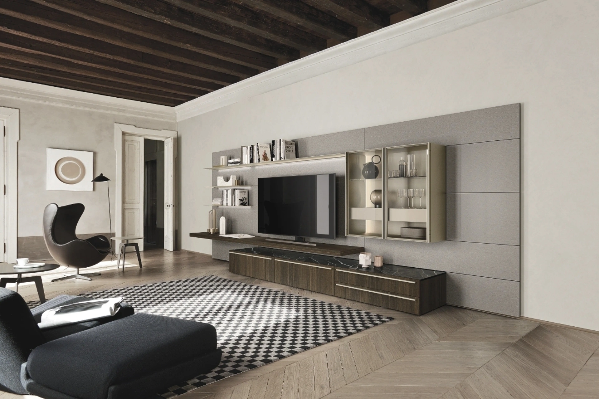 Per informazioni e preventivi sulla Parete Attrezzata Lampo 198 di Sangiacomo nella fotografia contattaci! Il modello proposto è realizzato in legno, ma grazie ad un'infinità di finiture, tonalità e forme, potrà adattarsi a stili di ogni genere. Attraverso un gioco dinamico di accostamenti fra elementi a giorno o vani chiusi, le Pareti Attrezzate moderne arredano il soggiorno sfruttando bene ogni spazio. Le Pareti Attrezzate hanno conquistato un posto importante nella zona giorno delle nostre case: sono mobili multifunzionali e salvaspazio sempre realizzabili su misura.