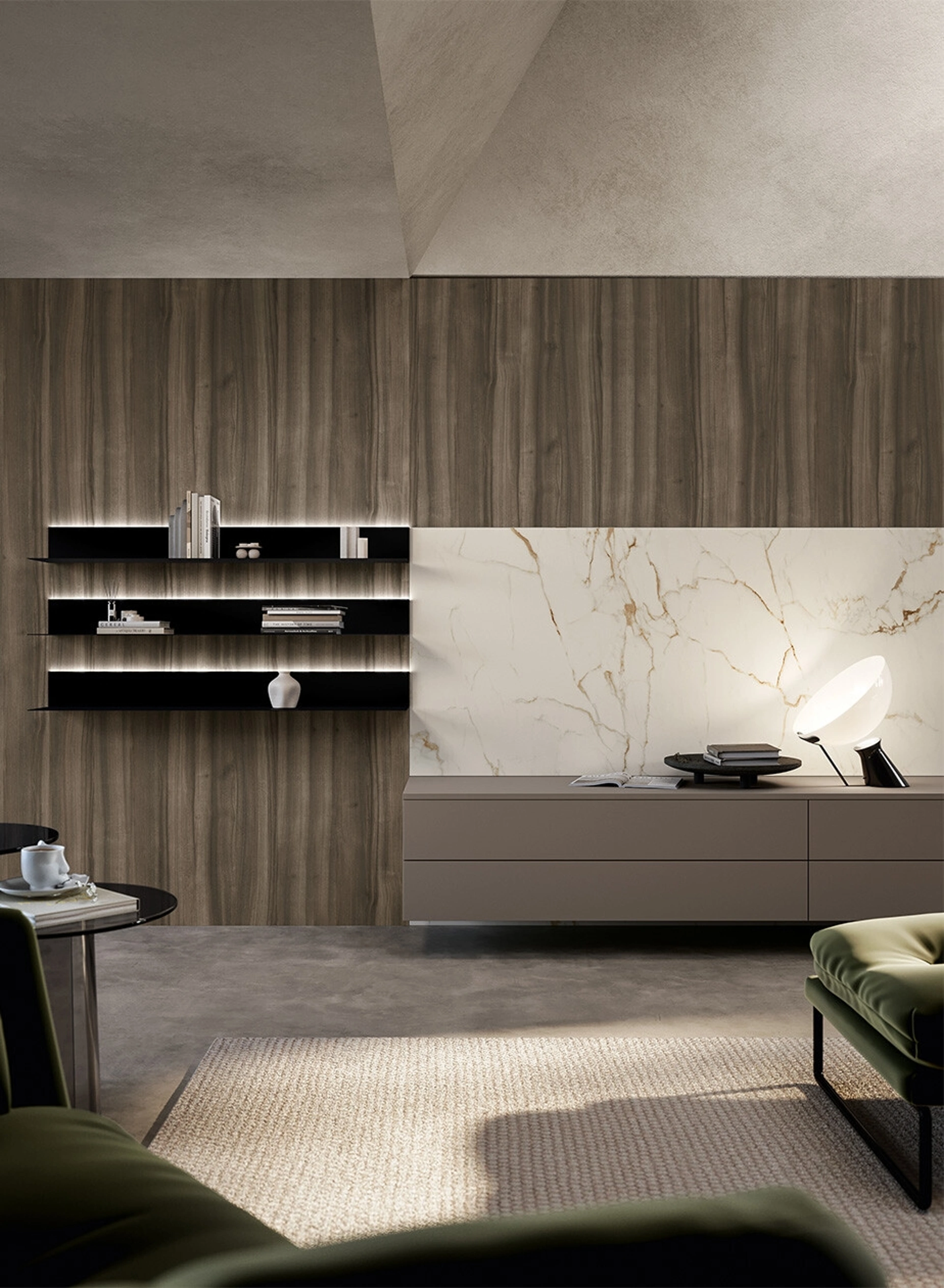 Le Pareti Attrezzate moderne offrono l'opportunità di creare diverse ambientazioni nel living, liberando spazio e ottimizzando ogni angolo. Siamo rivenditori di Arredamento Casa in laccato opaco dei migliori produttori: contattaci e scopri di più! Studiando le più attuali e personali problematiche abitative, selezioniamo solo le più esclusive e interessanti soluzioni d’arredo sul mercato, realizzabili su misura in base alle più personali richieste. La Parete Attrezzata Living Cloe di Arredo3 diventa presenza caratterizzante in stanze di ogni tipo grazie ai suoi elementi modulari e alla possibilità di selezionare texture, materiali, cromie, forme e tanto altro.