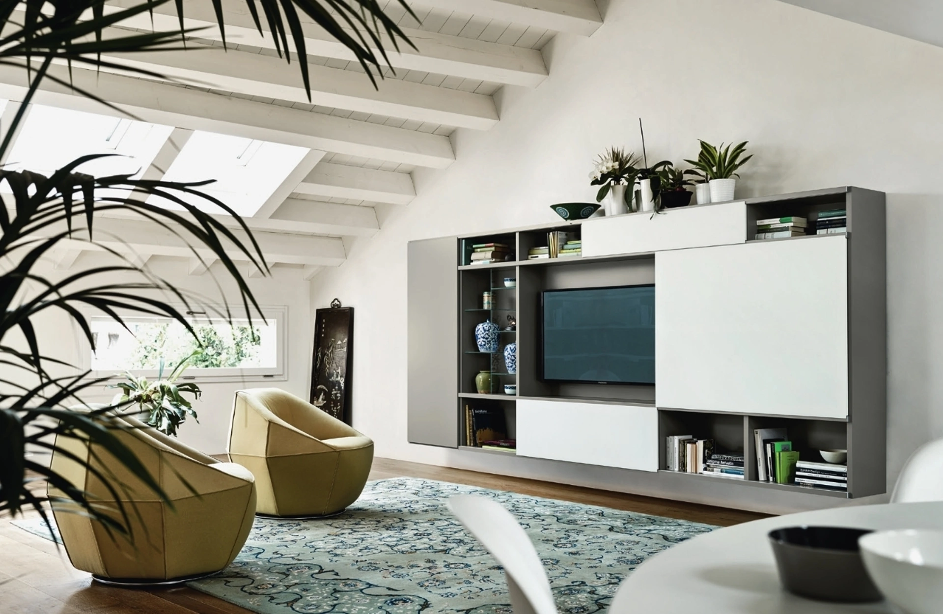 Le Pareti Attrezzate hanno conquistato un posto importante nella zona giorno delle nostre case: sono arredi plurifunzionali e salvaspazio sempre realizzabili su misura. Questa parete attrezzata è una delle soluzioni della firma e ti permetterà di allestire la zona giorno seguendo le più personali esigenze abitative. Attraverso un gioco dinamico di accostamenti fra accessori a giorno o vani chiusi, le Pareti Attrezzate moderne arredano il soggiorno ottimizzando ogni spazio.
