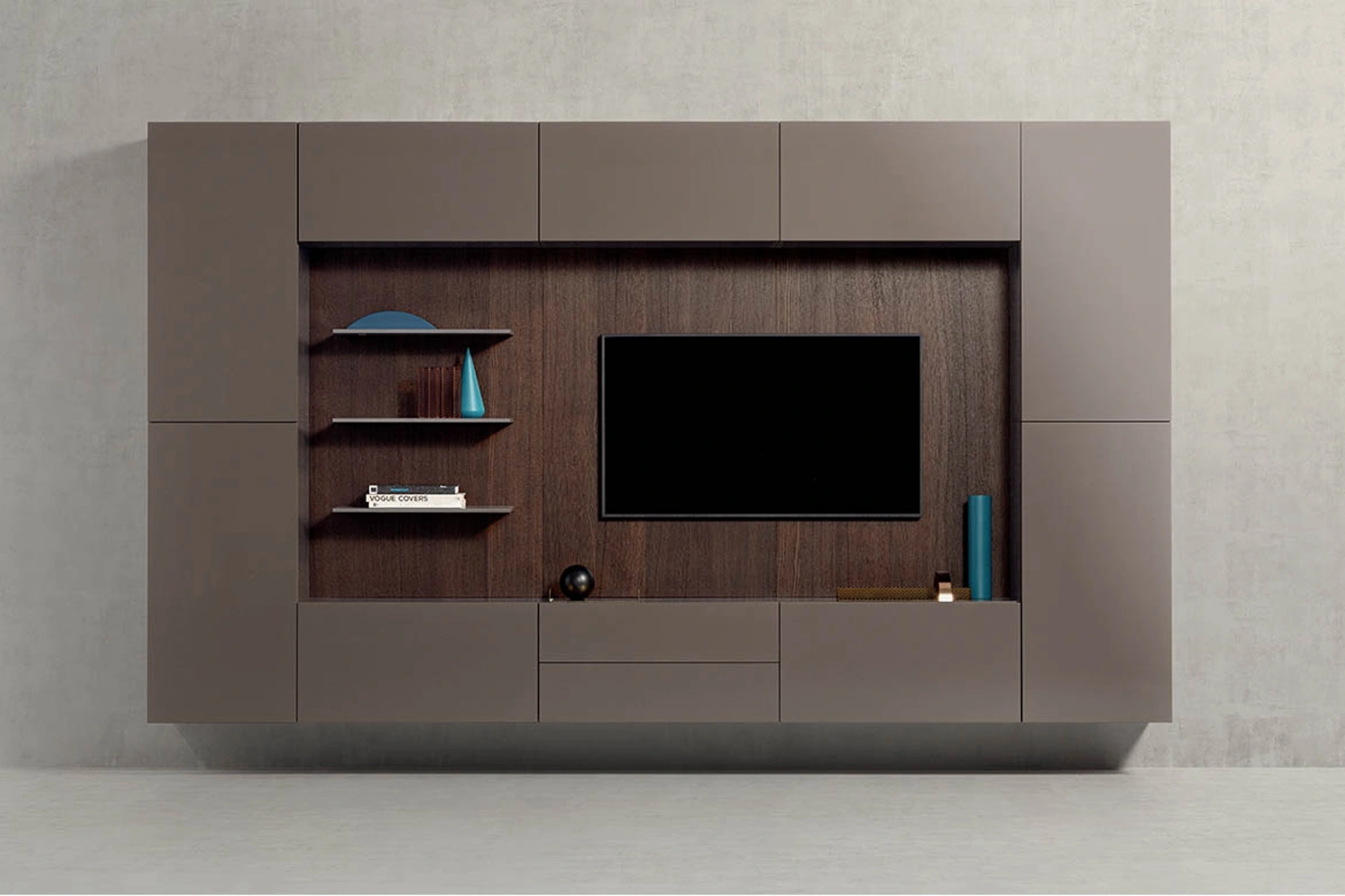 I mobili soggiorno in laccato opaco dalle linee moderne come il modello in foto sono davvero poliedrici e capaci di ammobiliare il living ottimizzando ogni angolo. Visto che il living deve essere uno spazio funzionale e di grande valore estetico, sono indispensabili alcuni mobili belli e pratici come le Pareti Attrezzate. Pianca mette a disposizione originali modelli di mobili soggiorno, diversi per stile e conformazioni, texture e elementi: scopri in negozio l'Arredamento Casa Brescia dei migliori brand. La Parete Attrezzata sospesa Spazio in Laccato Fango di Pianca in foto è una tra le più esclusive soluzioni d’arredo in commercio: massima componibilità e le diverse opportunità di progettazione la rendono bella e di grande qualità.