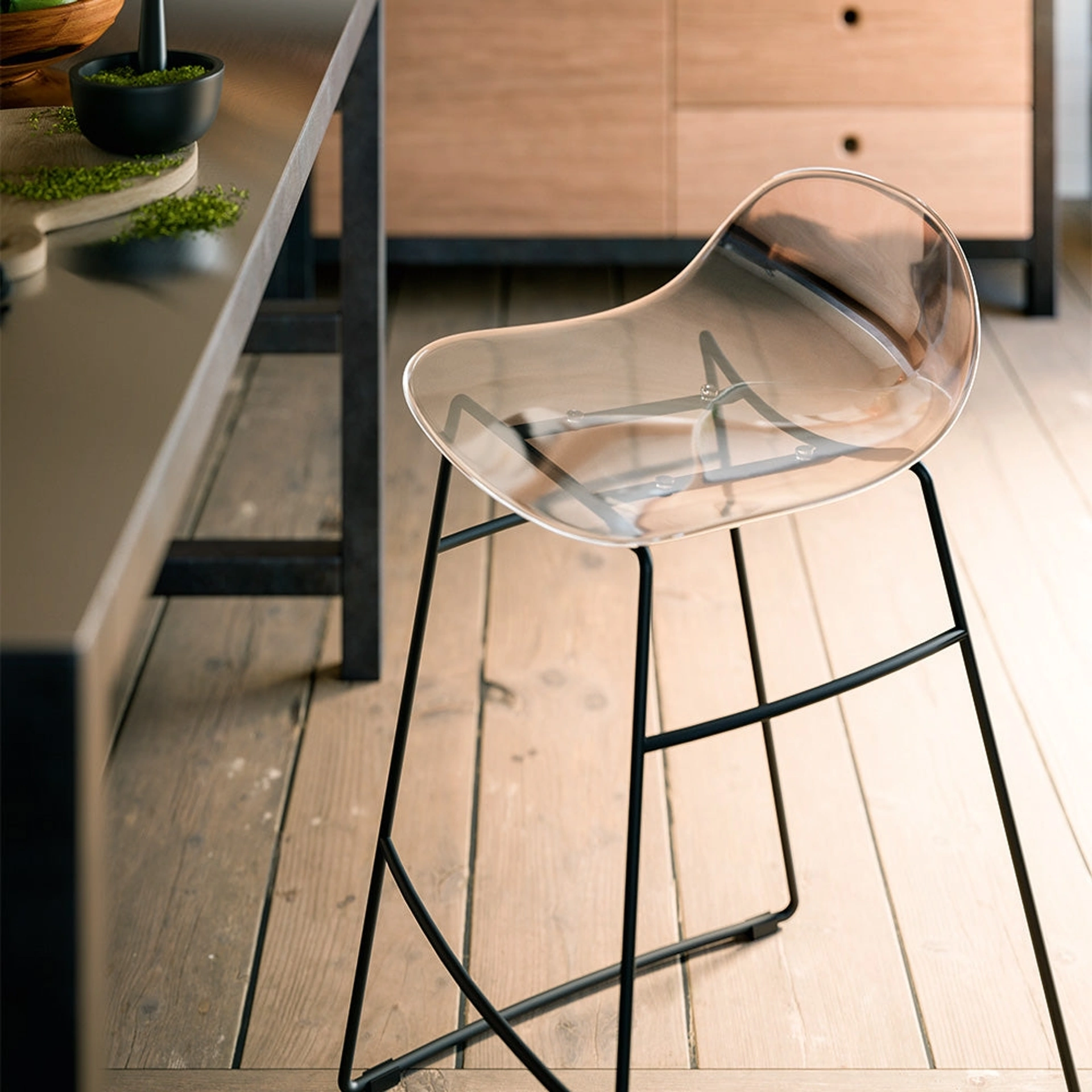Se vuoi una sedia in plastica per impreziosire l’ambiente di casa, ottieni informazioni sul modello nell'immagine e trova un tavolo abbinato. Sgabello Academy Trasparente di Connubia: questo modello andrà ad impreziosire spazi di ogni genere, specialmente ambientazioni moderne. Il soggiorno e la zona cucina non sono davvero accoglienti e confortevoli se arredati con le Sedie sbagliate, ecco perché occorre che siano abbinate ai restanti pezzi d'arredo e alle dimensioni della stanza. Una vasta gamma di sedute sgabelli da cucina ti attende nel nostro showroom: contattaci per informazioni e preventivi e ottimizza i tuoi locali con la qualità che solo Connubia sa garantirti per mobili e complementi.