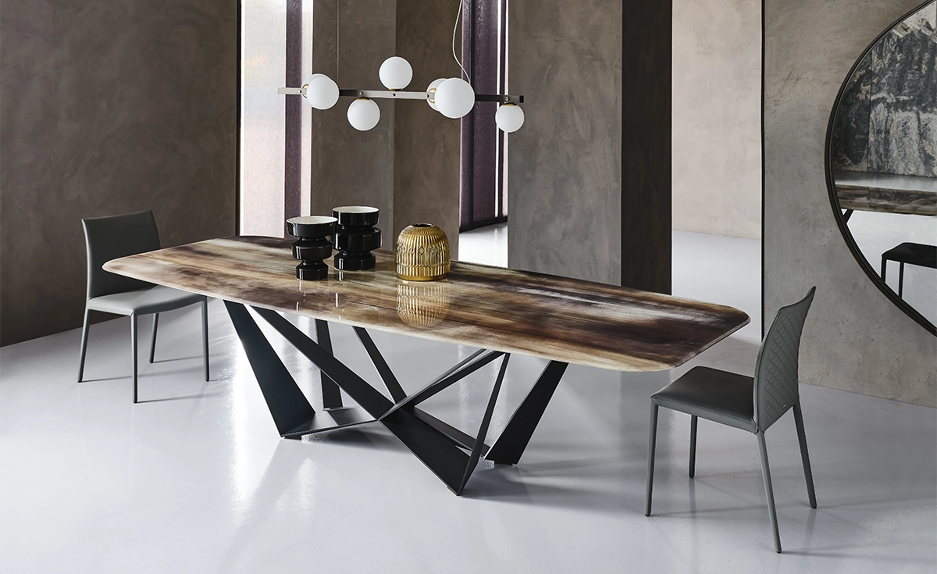 I Tavoli sono tra i mobili e complementi fondamentali dell'ambiente giorno e del locale cucina, ambienti dedicati alla socializzazione dove si chiacchiera con amici e parenti. Uno dei nostri modelli di Tavoli fissi sarà capace di impreziosire il tuo progetto d'arredo con funzionalità e stile. L'esclusivo marchio Cattelan Italia rende disponibili un ricco catalogo di Tavoli da pranzo fissi, tra cui anche quelli ideali per impreziosire al meglio locali design. Un tavolo di tutto rispetto deve essere in materiali pregiati, in modo che sia resistente e preservi negli anni il valore estetico che lo connotano. Tavolo Skorpio Crystalart di Cattelan Italia: in negozio ti attende una scelta quasi infinita di composizioni arredative di elevata qualità.