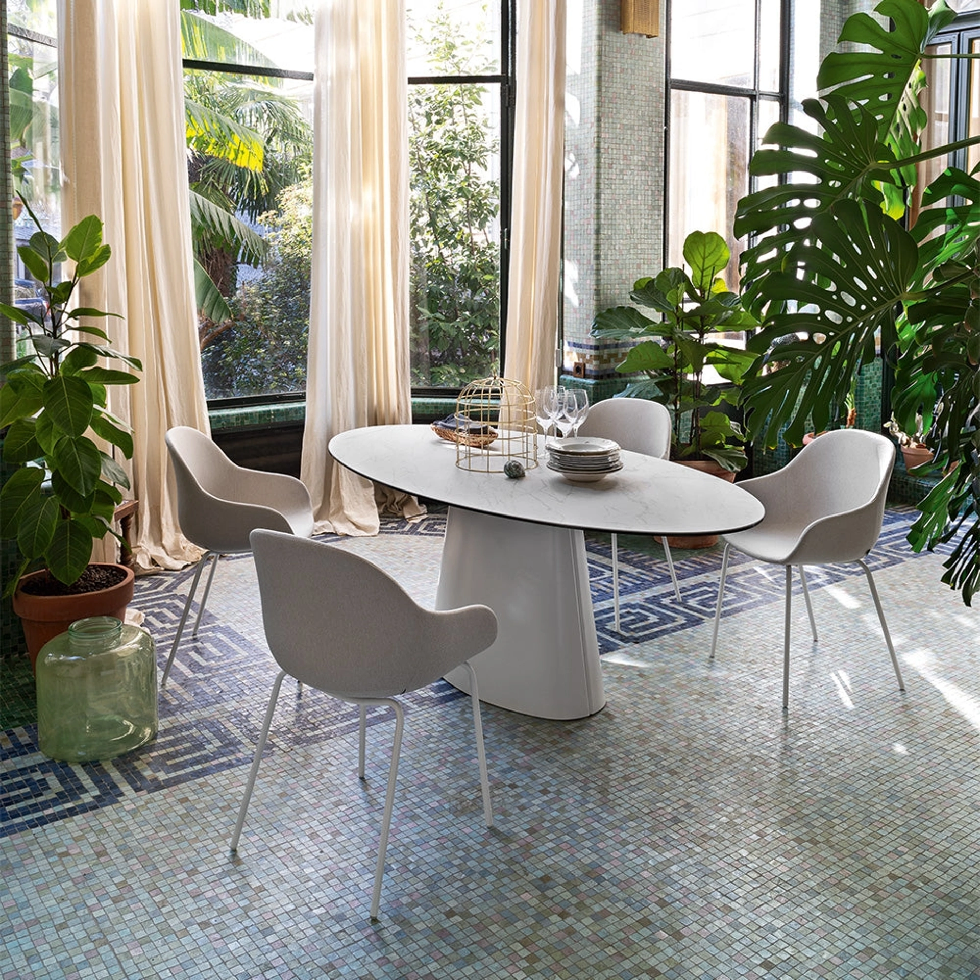 Se sei alla ricerca di un tavolo da pranzo di alto contenuto estetico, contattaci e ricevi info e preventivi sul modello presente in foto. Il rinomato marchio Connubia, leader nella realizzazione di mobili in ceramica, ha scelto per la sua collezione una grande varietà di materiali, forme e tonalità. Un modello come quello nella fotografia, in abbinamento alle giuste sedie, saprà arricchire il look delle stanze domestiche dedicate per eccellenza all'ospitalità. Tavolo Ovale Ellisse di Connubia: realizzato in materiali di qualità è contraddistinto dalle linee decise del top e da un basamento elegante e raffinato.