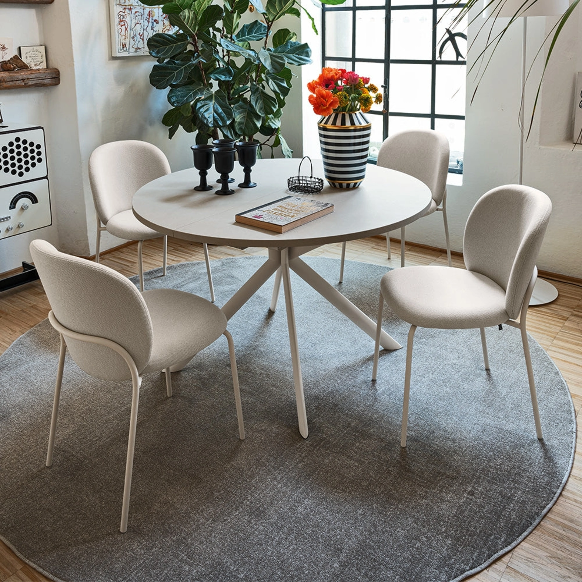 I Tavoli sono elementi d'arredo grazie ai quali è possibile valorizzare il living, la zona cucina o anche altri locali di casa, grazie a materiali di prima scelta e fantasiosi accostamenti cromatici. I modelli allungabili in melaminico come quello presente in foto si adattano ai più diversi contesti abitativi, essendo veramente poliedrici e resistenti. I Tavoli sono mobili irrinunciabili in ogni casa: completa il tuo concept d'arredo e dai vita alla casa che hai sempre voluto. Tavolo allungabile Giove di Connubia: scopri un ricco catalogo di mobili e oggetti accessori da pranzo per completare i tuoi interni contando su differenti possibilità di progettualità.