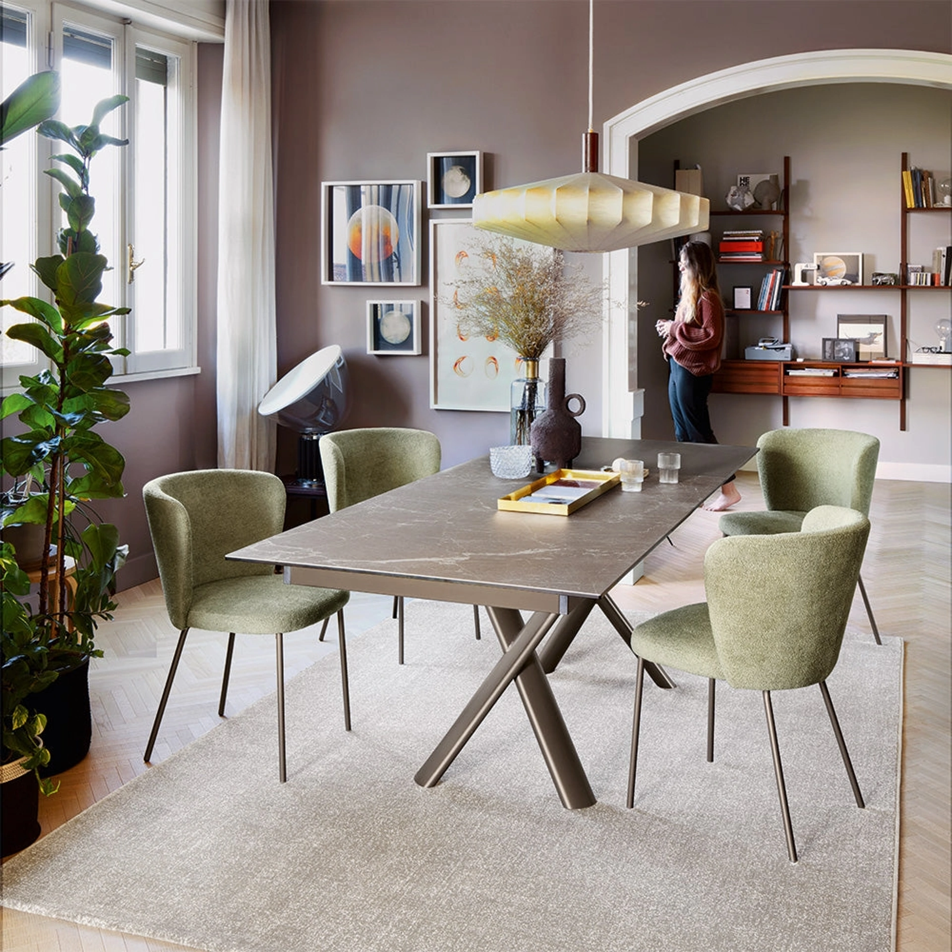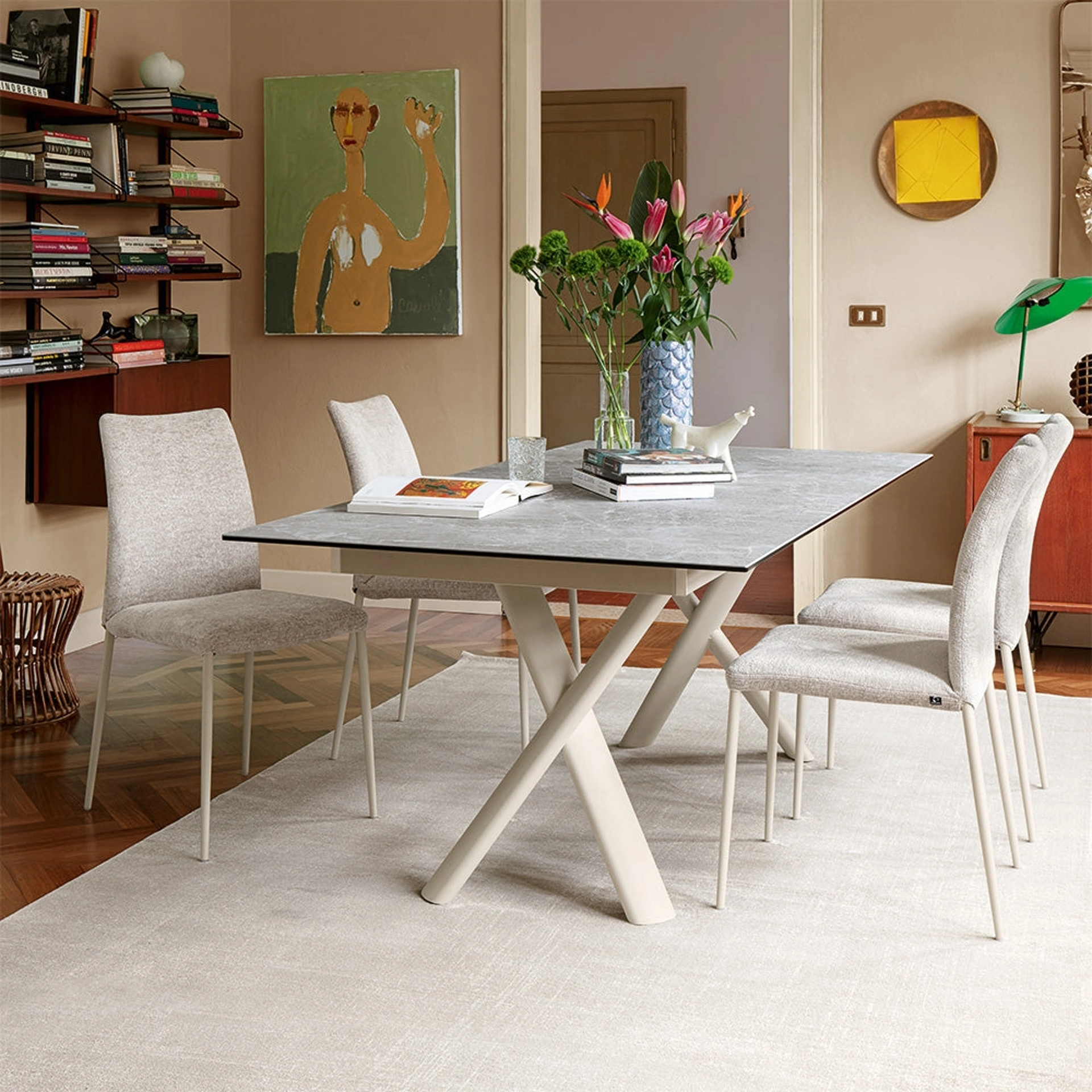Se cerchi un tavolo da pranzo di alto contenuto estetico, contattaci e ricevi info e preventivi sul modello visibile in foto. Tavolo allungabile Master di Connubia: realizzato in materiali di prima scelta è caratterizzato dalle forme decise del top e da un basamento ricercato ed elegante. Il rinomato brand Connubia, specialista nella realizzazione di mobili in ceramica, ha scelto per la sua serie un'infinità di materiali, linee e tonalità. Un modello come quello nella fotografia, in abbinamento alle giuste sedute, saprà completare l'atmosfera delle stanze di casa dedicate in assoluto alla convivialità.