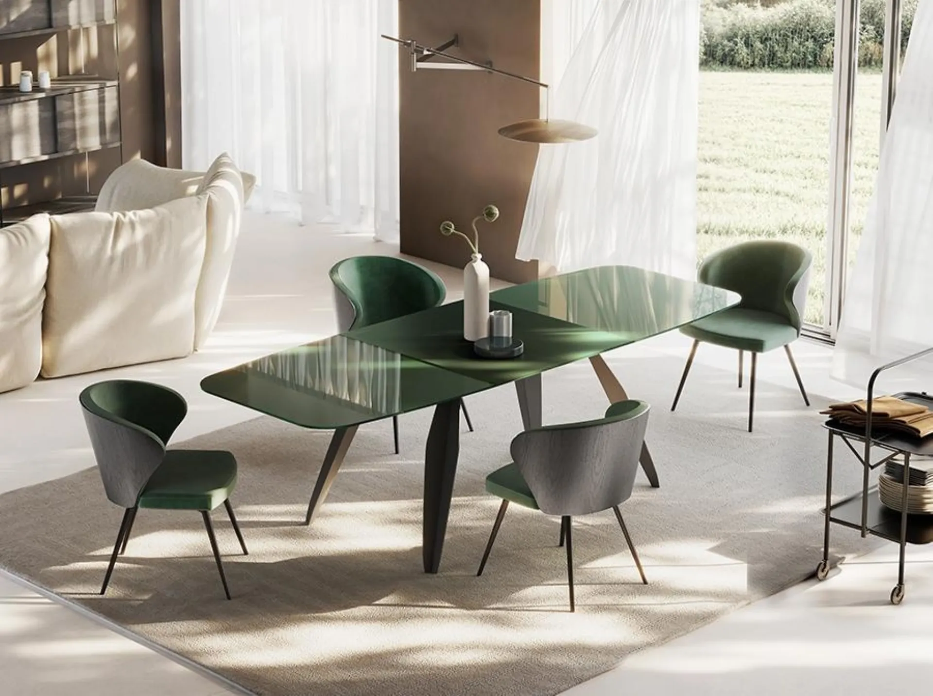 Un modello come quello in foto, in abbinamento alle giuste sedute, saprà impreziosire il look delle stanze di casa dedicate per eccellenza alla convivialità. Tavolo allungabile Nebula di Pezzani: realizzato in materiali durevoli è caratterizzato dalle forme decise del top e da un basamento elegante e raffinato. Ideali per dare vita a degli abbinamenti unici con sedute e complementi moderni, i Tavoli allungabili della marca sono soluzioni tra le più esclusive in commercio, ideali per il soggiorno e la zona cucina. Se vuoi un tavolo da pranzo di alto contenuto estetico, contattaci e ricevi informazioni e preventivi sul modello visibile in foto.