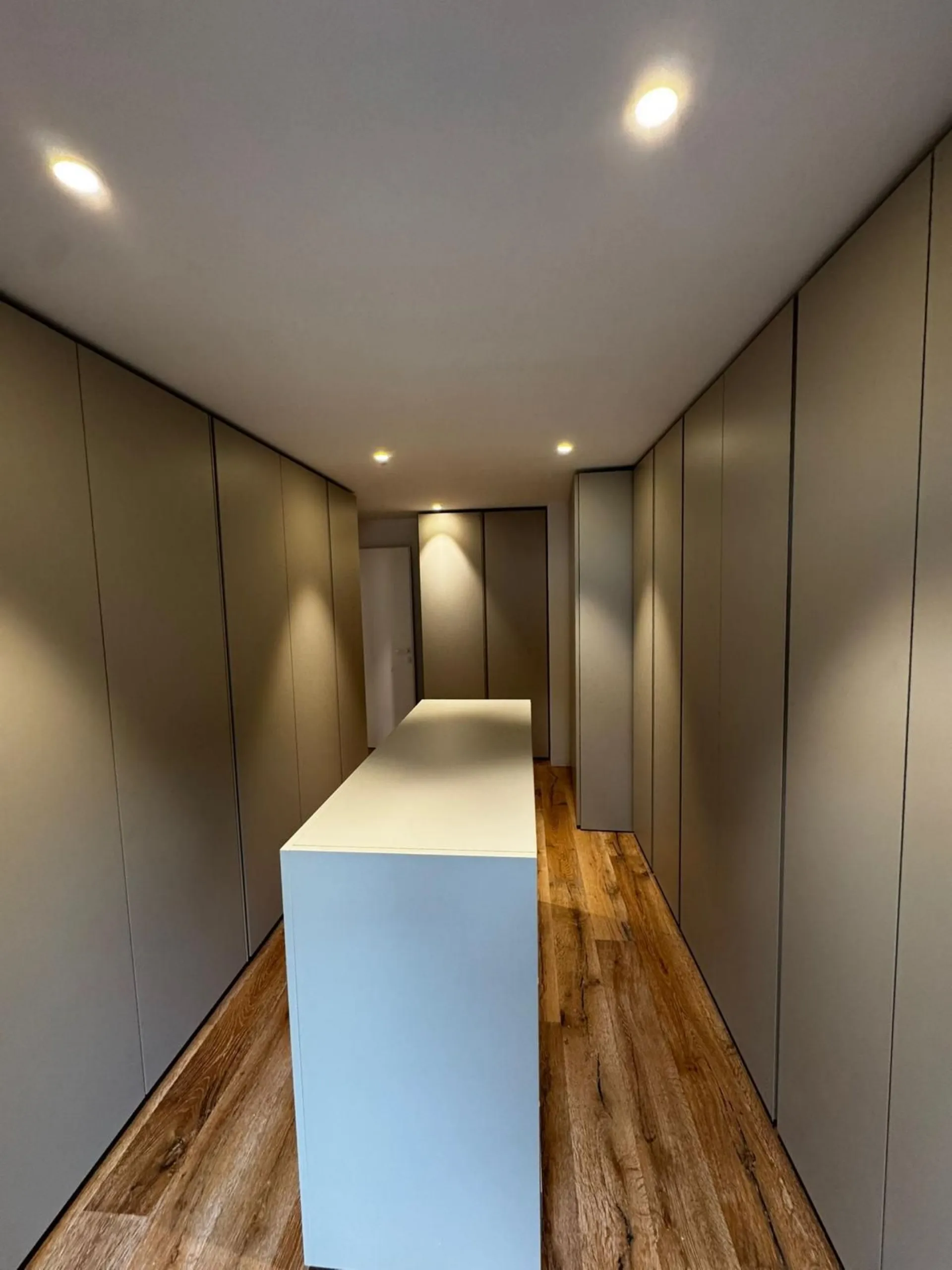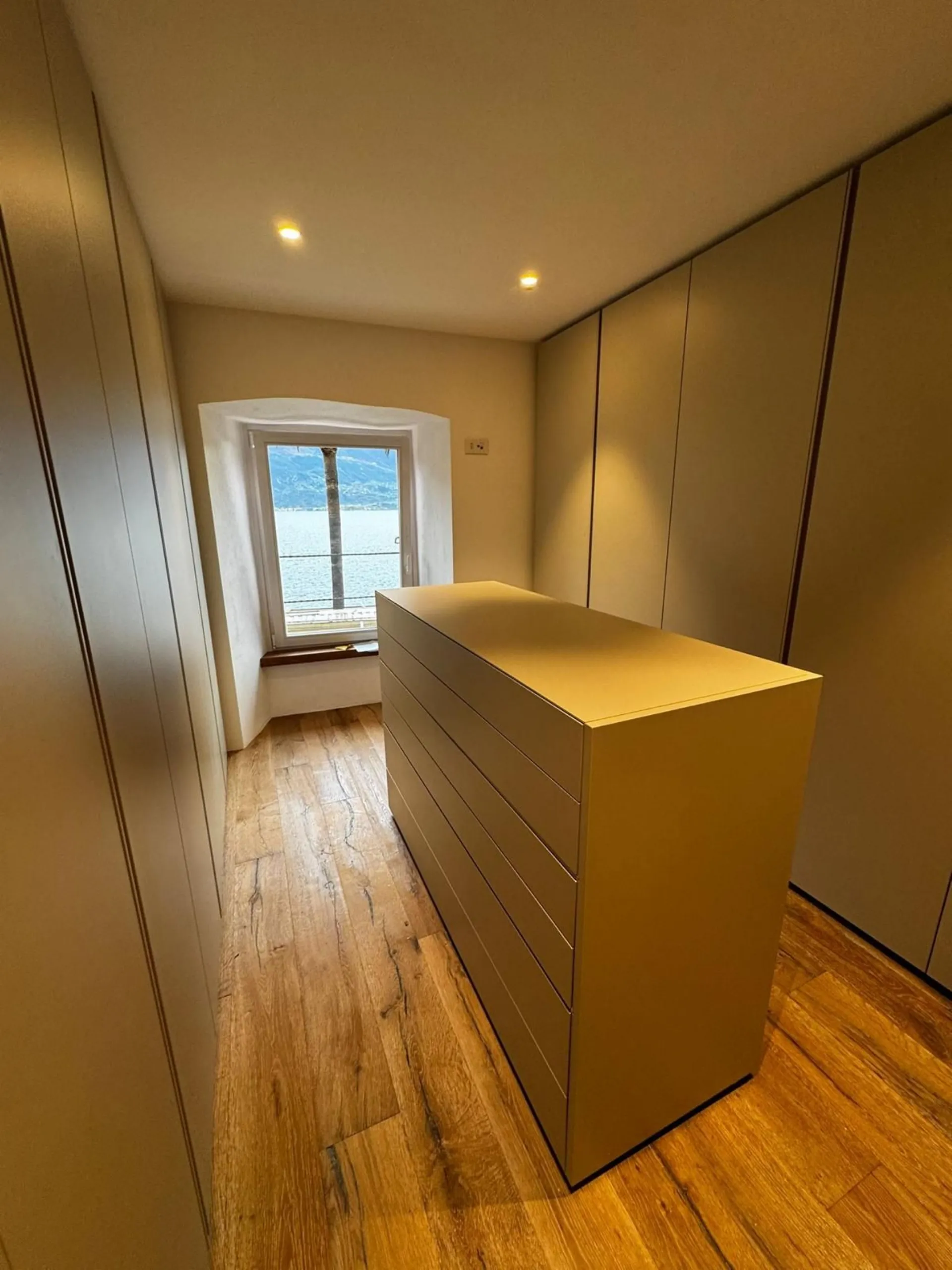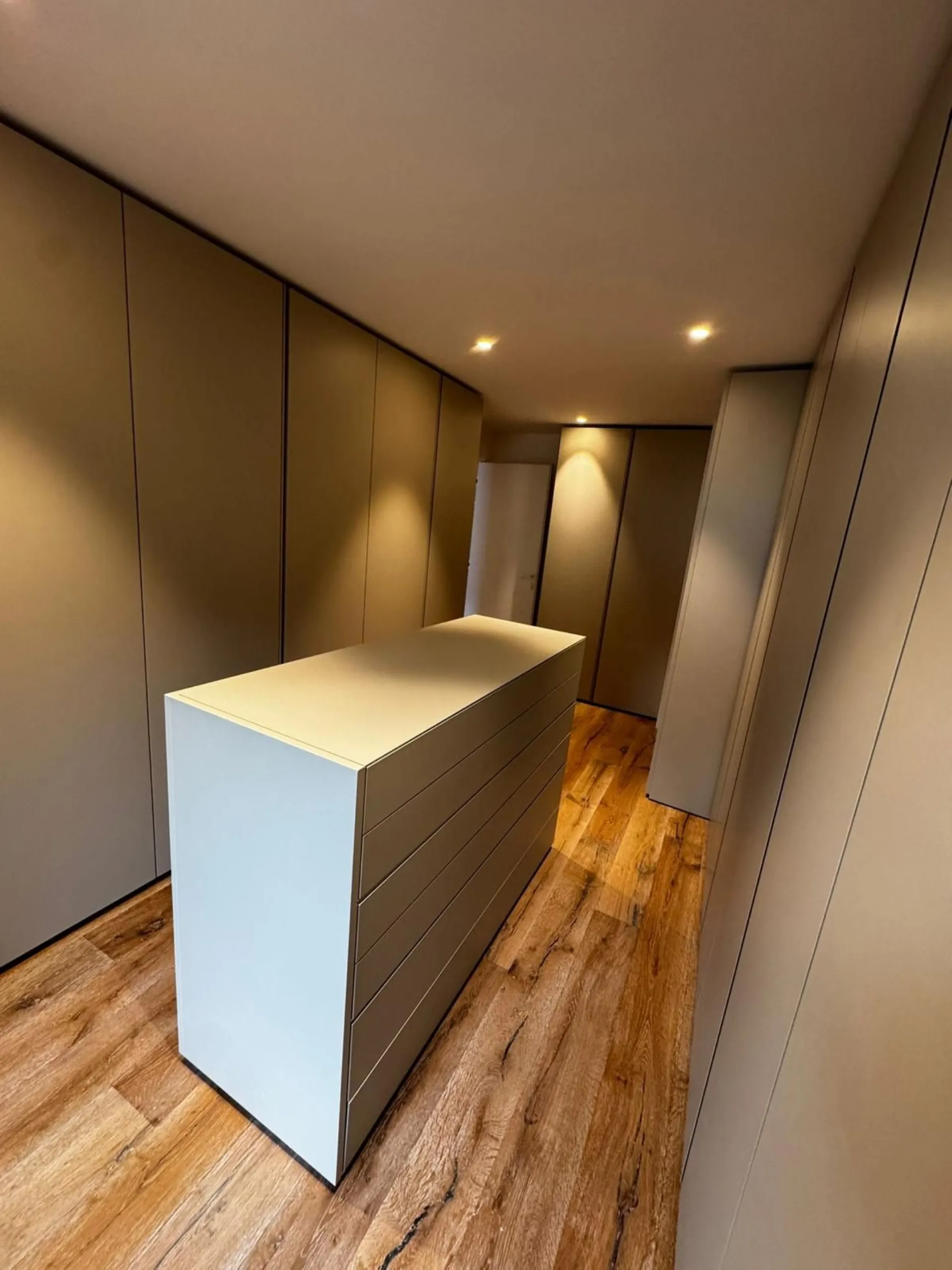 Questa cabina armadio è stata realizzata completamente su misura, sfruttando al meglio una zona caratterizzata da pareti fuori squadro. Le armadiature, progettate a tutta altezza da soffitto a terra, garantiscono ordine, funzionalità e una perfetta integrazione con l’architettura dello spazio. L’intero ambiente è laccato in una finitura raffinata, scelta per donare luminosità e un’immediata sensazione di pulizia visiva. Le linee sono essenziali e contemporanee, pensate per valorizzare la purezza del design e creare un’atmosfera elegante e senza tempo. Un progetto che unisce precisione artigianale e cura estetica, trasformando una geometria complessa in uno spazio ordinato, funzionale e impeccabilmente armonioso.