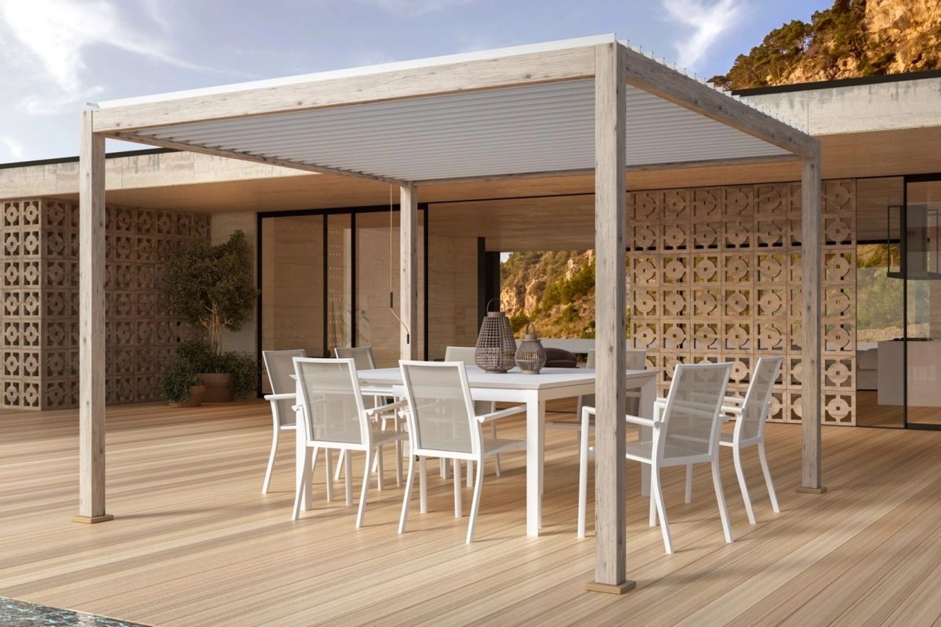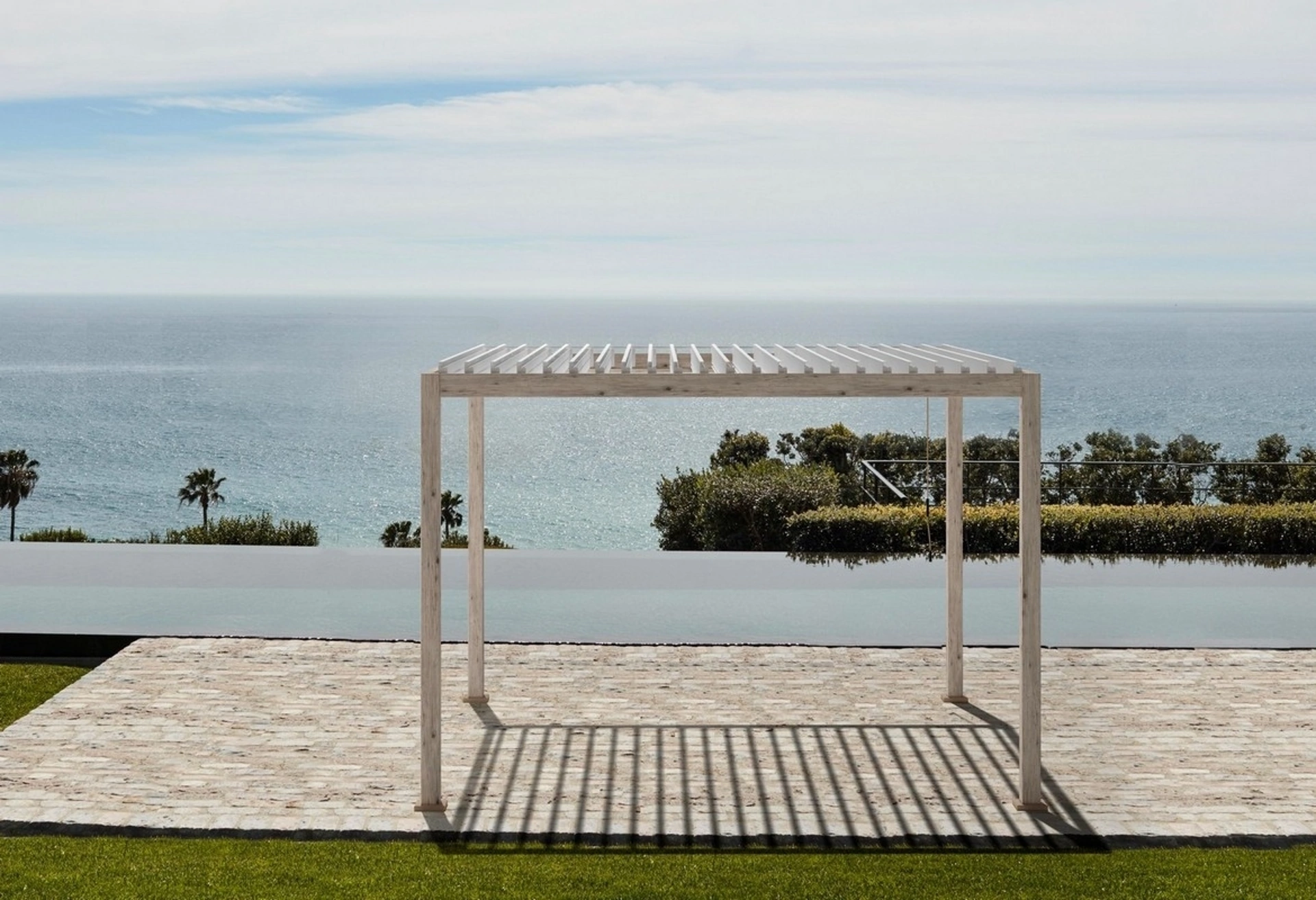 Oggigiorno, anche il giardino viene considerato spazio domestico da arredare attentamente, in modo che sia ben strutturato e bello da vedere. La Pergola Ocean Rustic Bianco di Bizzotto nell'immagine ti permetterà di ricreare un confortevole soggiorno all'aria aperta, mixando grandi doti di funzionalità e design. Così come nei locali indoor, anche all'aria aperta è possibile esprimere il proprio stile in fatto di arredo, creando composizioni di alto valore estetico. Divertiti a arredare il tuo outdoor come fosse un locale aggiuntivo di casa, scopri da noi le Pergole a muro o freestanding dei migliori brand.